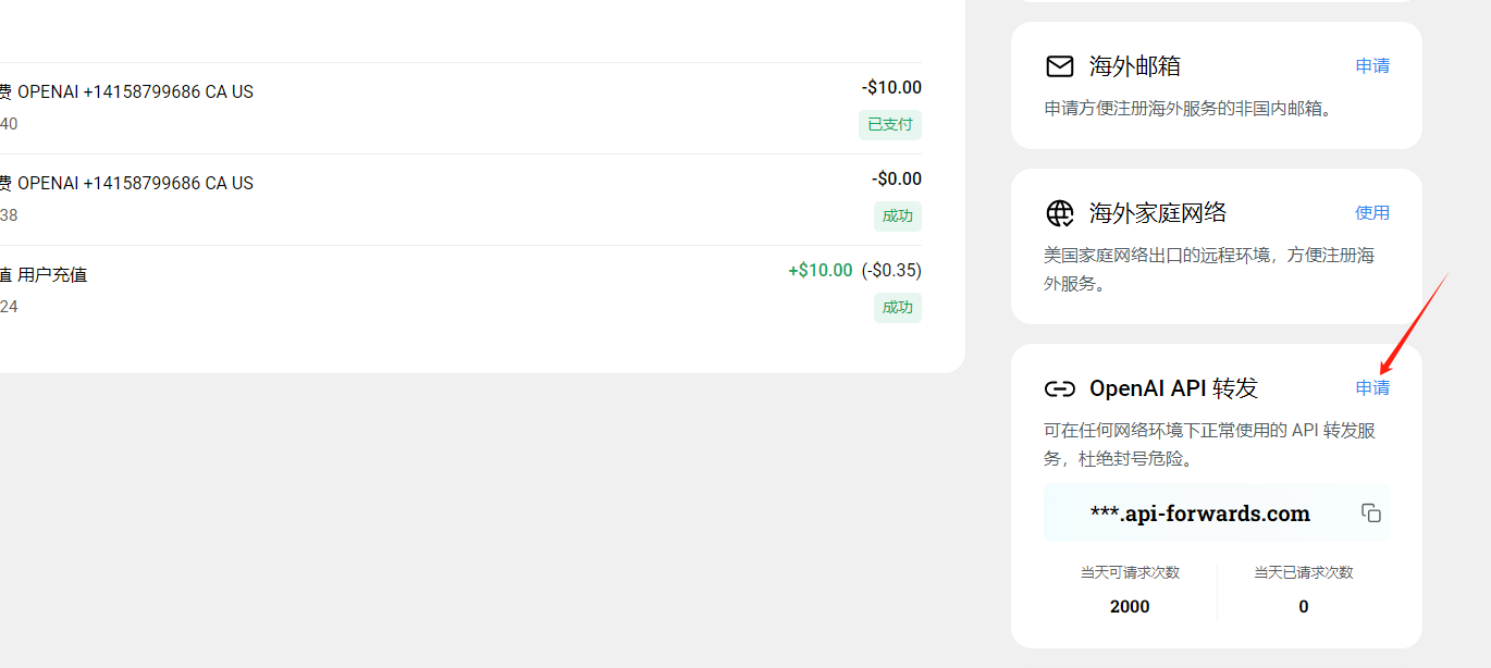 API,展示不同的代理域名,复制即可替换OpenAI域名。创建完成之后要等到几分钟才能使用。