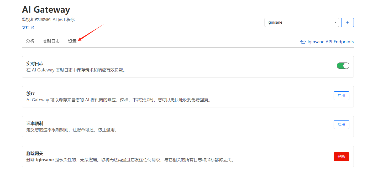 - 创建网关 「AI」->「AI Gateway」->「创建网关」: